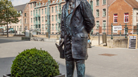 waar zijn voorouders ooit woonden, kijkt een bronzen Beethovenjoch bewonderend