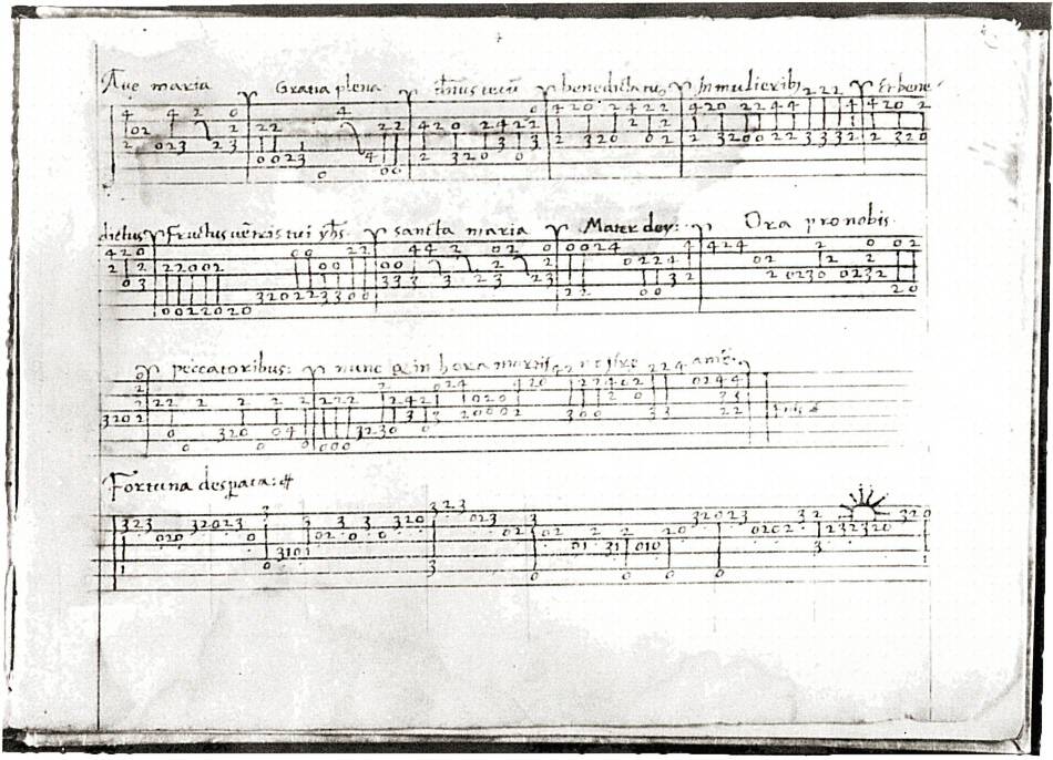 Je luistert naar Dowland, The Second Booke of Songs or Ayres: Flow, my teares. Mustafa Kamaliddin (ukelele, met tabulatuur-partituur), 2021.